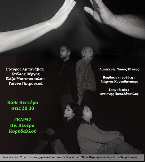 Το έργο θα παίζεται κάθε Δευτέρα από 19 Ιανουαρίου 2026 και ως τον Μάρτιο, στο ΓΚΑΡΑΖ του Πνευματικού Κέντρου Κορυδαλλού, στις 20.30