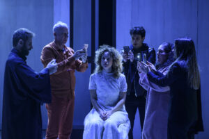 Τον κεντρικό ρόλο φέρνει στο σήμερα η Έλλη Τρίγγου, υιοθετώντας όλα τα χαρακτηριστικά μιας αμφιλεγόμενης αγιότητας που επηρεάζει συνειδήσεις και επηρεάζεται από τις ανάγκες της αγοράς. Μαζί της επί σκηνής, οι Θανάσης Βλαβιανός, Ευαγγελία Καρακατσάνη, Ειρήνη Μπούνταλη, Γιώργος Νούσης και Αλέξανδρος Τούντας συνθέτουν ένα σκηνικό σύμπαν όπου η πίστη, η εξουσία και η ανάγκη για το “θαύμα” συγκρούονται μετωπικά με την πραγματικότητα.