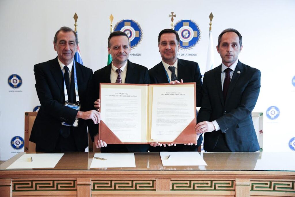 Το Διεθνές Κέντρο Ολυμπιακής Εκεχειρίας εκπροσώπησε ο Δημοσθένης Δημόπουλος. Τη Διακήρυξη έχουν επίσης υπογράψει οι Δήμοι Σπάρτης και Ήλιδας.