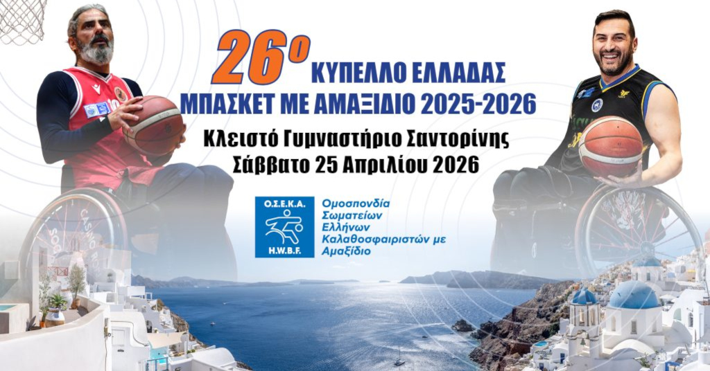 Η Σαντορίνη γίνεται αυτό το Σάββατο η… πρωτεύουσα του μπάσκετ με αμαξίδιο. Ένα νησί, ένας αγώνας, δύο ομάδες, ένας τίτλος. Ελάτε να το ζήσουμε μαζί, να απολαύσετε μια μοναδική αθλητική συνάντηση. Κι όσοι δεν βρίσκεστε στο νησί, μπορείτε να δείτε τον τελικό του Κυπέλλου live, από την ΟΣΕΚΑ TV.