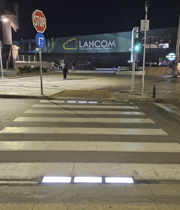 • 32 σετ φωτεινών μπαρών πεζοδρομίου τύπου LED, στις άκρες της διάβασης στον χώρο αναμονής των πεζών.