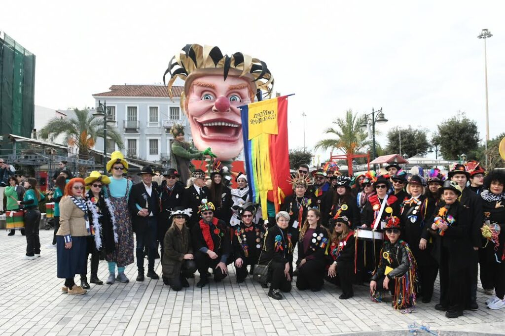 Η παράδοση έγινε στα σκαλιά του Δημαρχείου, υπό τους αποκριάτικους σκοπούς της Δημοτικής Μουσικής και τους ήχους της μπάντας κρουστών.