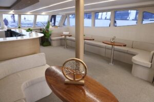 Το OMEGA αποτελεί τη νεότερη και πιο φιλόδοξη προσθήκη στον στόλο της εταιρείας — ένα εντυπωσιακό σκάφος εκδηλώσεων και υψηλών προδιαγραφών κρουαζιέρας, το οποίο σχεδιάστηκε και κατασκευάστηκε εξ’ ολοκλήρου στην Ελλάδα, στο Πέραμα, μέσα σε μόλις έναν χρόνο, χρονικό διάστημα που θεωρείται εξαιρετικά σπάνιο και σχεδόν αδύνατο για τα ελληνικά ναυπηγικά δεδομένα.