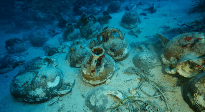 - 4 κομμάτια ενάλιων αμφορέων από τη Βυζαντινή περίοδο,