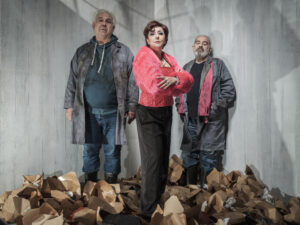 Επί σκηνής συναντιούνται οι Ερρίκος Λίτσης, Κώστας Καζάκας και Άνδρη Θεοδότου, σε μια παράσταση που – με όπλο το χιούμορ, την τρυφερότητα και την αλήθεια – στρέφει το βλέμμα κάτω από την επιφάνεια, εκεί όπου καταλήγουν όσα ο «επάνω» κόσμος θεωρεί άχρηστα.