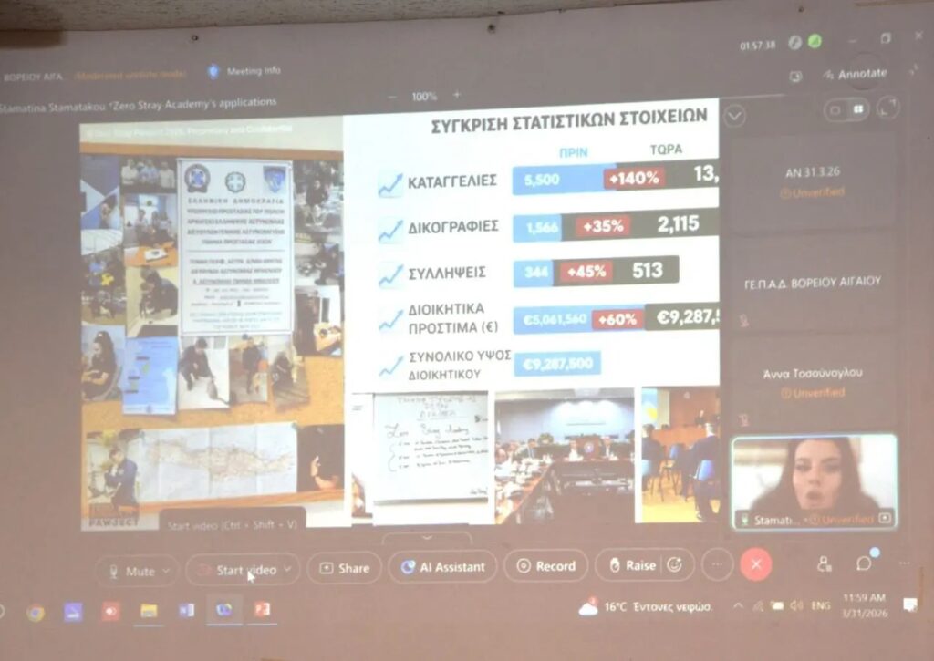 Με επιτυχία πραγματοποιήθηκε, σήμερα (31-03-2026) το πρωί, στο Ομήρειο Πνευματικό Κέντρο του Δήμου Χίου, ημερίδα με θέμα «Προστασία των Ζώων», που διοργανώθηκε από τη Γενική Περιφερειακή Αστυνομική Διεύθυνση Βορείου Αιγαίου και τον Δήμο Χίο, σε συνεργασία με την Ειδική Γραμματεία για την Προστασία των Ζώων Συντροφιάς του Υπουργείου Εσωτερικών, την Πανελλαδική Φιλοζωική και Περιβαλλοντική Ομοσπονδία και το «Zero Stray Pawject».