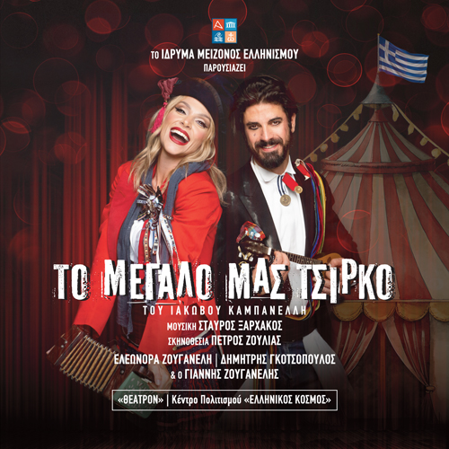 Το ιστορικής σημασίας έργο «Το Μεγάλο μας Τσίρκο» του Ιάκωβου Καμπανέλλη, σε μουσική του Σταύρου Ξαρχάκου και σε σκηνοθεσία του Πέτρου Ζούλια κάνει πρεμιέρα στο «Θέατρον» του Κέντρου Πολιτισμού «Ελληνικός Κόσμος» το Σάββατο, 6 Δεκεμβρίου στις 21:00. Το έργο ακολουθεί με δραματικό, αλλά και χιουμοριστικό τρόπο την πορεία της ελληνικής ιστορίας. Τα τραγούδια, που ερμηνεύει ζωντανά ο Κώστας Τριανταφυλλίδης και όλος ο θίασος με την ορχήστρα επί σκηνής, εναλλάσσονται με την αφήγηση και συνθέτουν ένα έργο γεμάτο συγκίνηση και ιστορικές αναφορές.