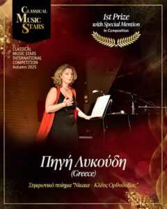 Τρεις Διεθνείς Διακρίσεις για το Έργο « Χαίρε Νίκαια – Κλέος Ορθοδοξίας / Nicaea – Glory of Orthodox» της Ελληνίδας Συνθέτριας Πηγής Λυκούδη σε ποίηση Γιάννη Π.Ιωαννίδη