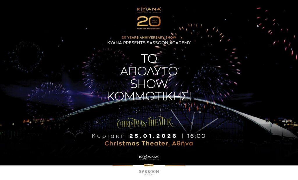 Ο Aris Intzes, Assistant Creative Director, ο Daniel McCourt, UK Assistant Creative Director, ο Pink Grubb, Senior Colour Director και η Mia Leet, Colour Director της παγκοσμίου φήμης Sassoon Academy παρουσιάζουν τις πιο hot τάσεις σε τεχνικές cutting, colouring και styling με προϊόντα ΚΥΑΝΑ την Κυριακή 25.01.2026 στις 16:00 στο Christmas Theater στην Αθήνα.