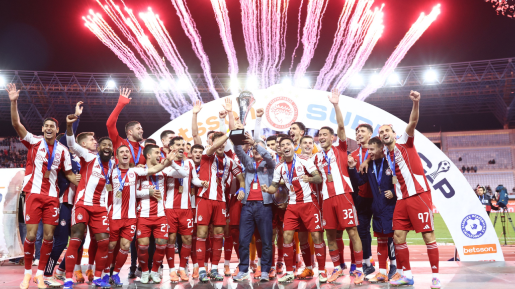 Ολυμπιακός: Τζολάκης, Ορτέγκα, Μπιανκόν (88′ Καλογερόπουλος), Ρέτσος, Ροντινέι (91′ Κοστίνια), Έσε, Μουζακίτης, Μαρτίνς (110′ Γιαζίτζι), Τσικίνιο (90+2′ Γιάρεμτσουκ), Ποντένσε (102′ Στρεφέτσα), Ταρέμι (106′ Νασιμέντο).