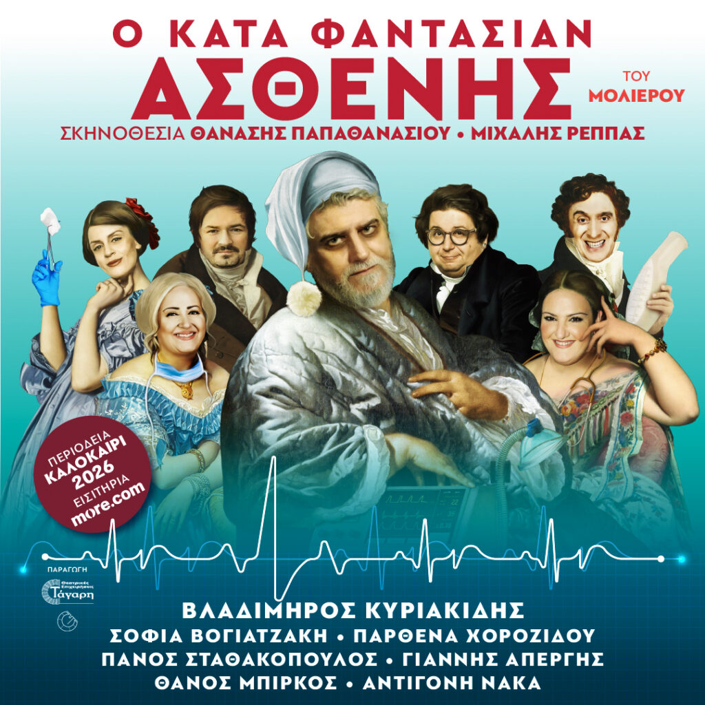 Οι θεατρικές επιχειρήσεις Τάγαρη παρουσιάζουν σε μεγάλη καλοκαιρινή περιοδεία το διαχρονικό έργο του Μολιέρου «Κατά Φαντασίαν Ασθενής». Ένας τίτλος που ενσωματώθηκε σαν έκφραση στην ελληνική γλώσσα. Μια φράση που έγινε κομμάτι της καθημερινότητάς μας. Όλοι γνωρίζουμε τι σημαίνει — ακόμη κι αν δεν ξέρουμε ότι γεννήθηκε από την πένα του Μολιέρου.