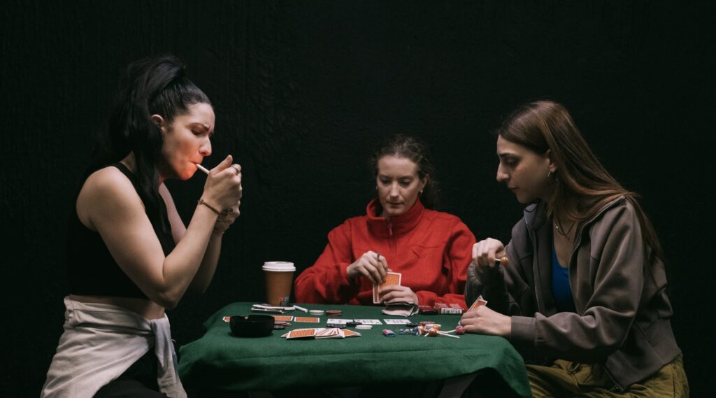 Επί σκηνής, τρεις ηθοποιοί. Τρεις γυναίκες. Τρεις κρατούμενες. Ένα mexican standoff χωρίς πραγματικό νικητή.  Ένα τρίγωνο που η σύγκρουση θα περνάει από τον ένα στον άλλο σαν μπαλάκι. Το σκηνικό: ένα στενό κελί φυλακής. Η ατμόσφαιρα είναι ασφυκτική. Τα σώματα των ηθοποιών παλεύουν με τον χώρο. Σε μια καθημερινότητα όπου η κάθε μέρα μοιάζει ίδια με την προηγούμενη, η υπομονή εξαντλείται, οι θεματικές εξαντλούνται, η κούραση της στασιμότητας υπερκαλύπτει την όρεξη για ζωή και η γλώσσα αλλάζει. Ο λόγος γίνεται άμεσος, κοφτός, επιτακτικός, άναρχος και επαναληπτικός. Η φόρμα της παράστασης είναι ρεαλιστική. Δίνουμε μεγάλη έμφαση στις σχέσεις των χαρακτήρων και στη δυναμική μεταξύ τους, μέσα από μια προσέγγιση φυσικής υποκριτικής. Με αυτόν τον τρόπο δημιουργήσαμε μια μαύρη κωμωδία, που ταξιδεύει τον θεατή μέσα από διαδοχικά στάδια συναισθημάτων.
